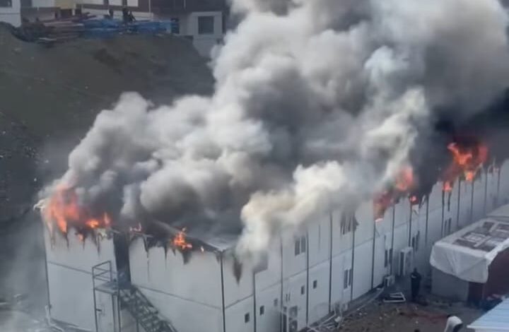 Hatay’ın Kırıkhan ilçesine bağlı Mimar Sinan Mahallesi’nde, bir inşaat alanında işçilerin kaldığı konteynerlerde yangın çıktı.