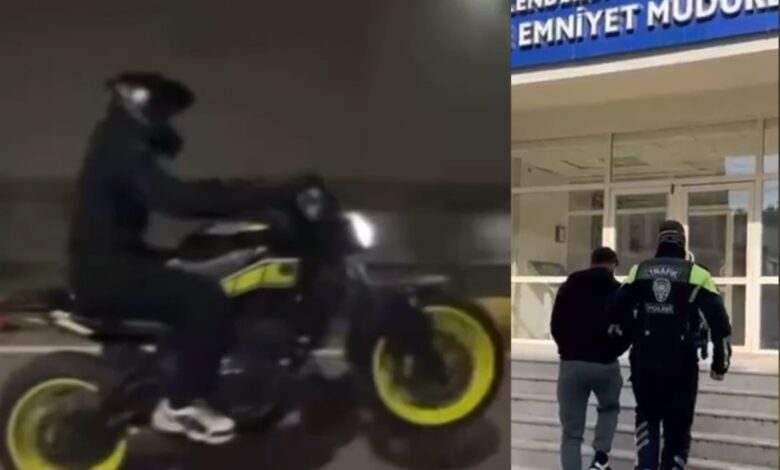 Hatay Emniyet Müdürlüğü ekiplerince İskenderun ilçesinde, motosikletiyle ön kaldırma ve akrobasi hareketleri yapan, hız ihlali gerçekleştiren ve plakasız araç kullandığı anlara ait görüntüleri sosyal medya hesaplarında paylaşan sürücüye yönelik işlem yapıldı.