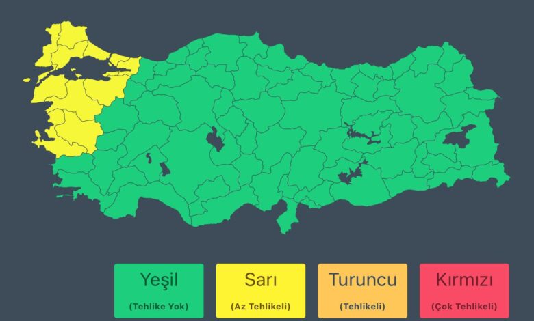 İçişleri Bakanlığı, Meteoroloji Genel Müdürlüğü‘nden alınan son bilgilere göre, Marmara’nın batısı ile İzmir ve Manisa‘nın kuzey kesimlerinde 14 Ağustos 2025 Perşembe günü gece saatlerine kadar etkili olacak kuvvetli rüzgar ve fırtına uyarısında bulundu.